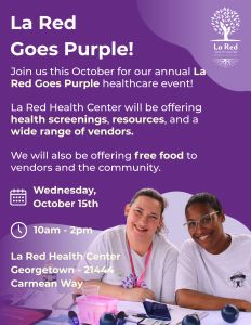 Come visit ODS and partners at La Red Health Center in Georgetown for the annual La Red Goes Purple Resource Fair presented by La Red Health Center (21444 Carmean Way, Georgetown, De 19947) on Wednesday October 15th, 2025, from 10am – 2pm. ODS will be present to connect individuals with expungement services, among many other resources that will be available to the public that day.